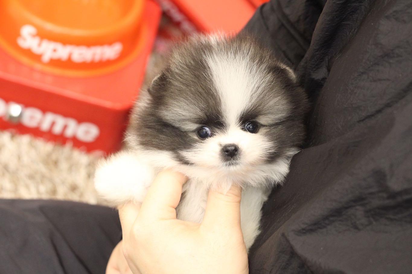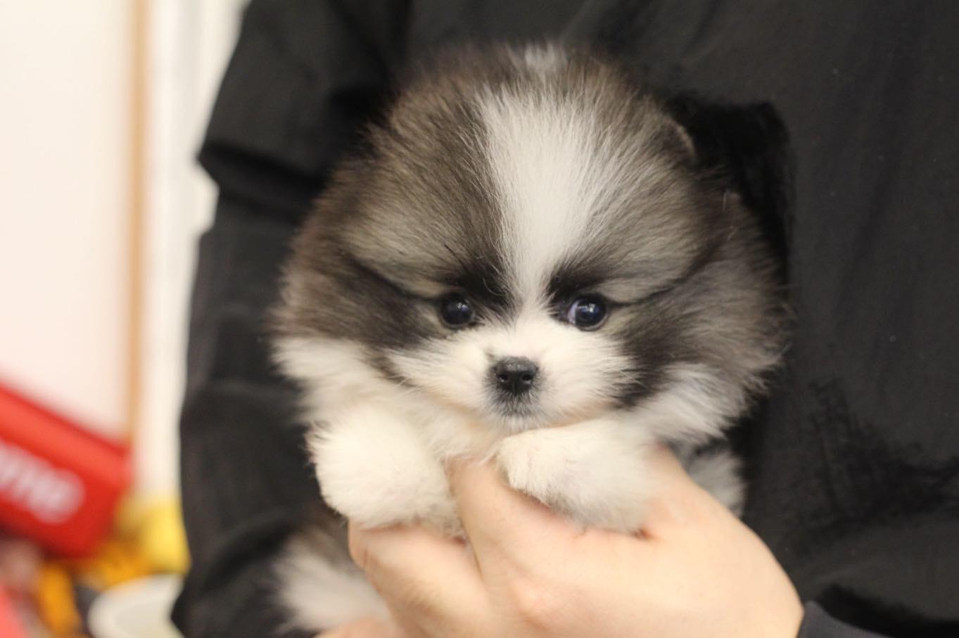 He is a parti-colored male Pomeranian that is the HIGHEST level!